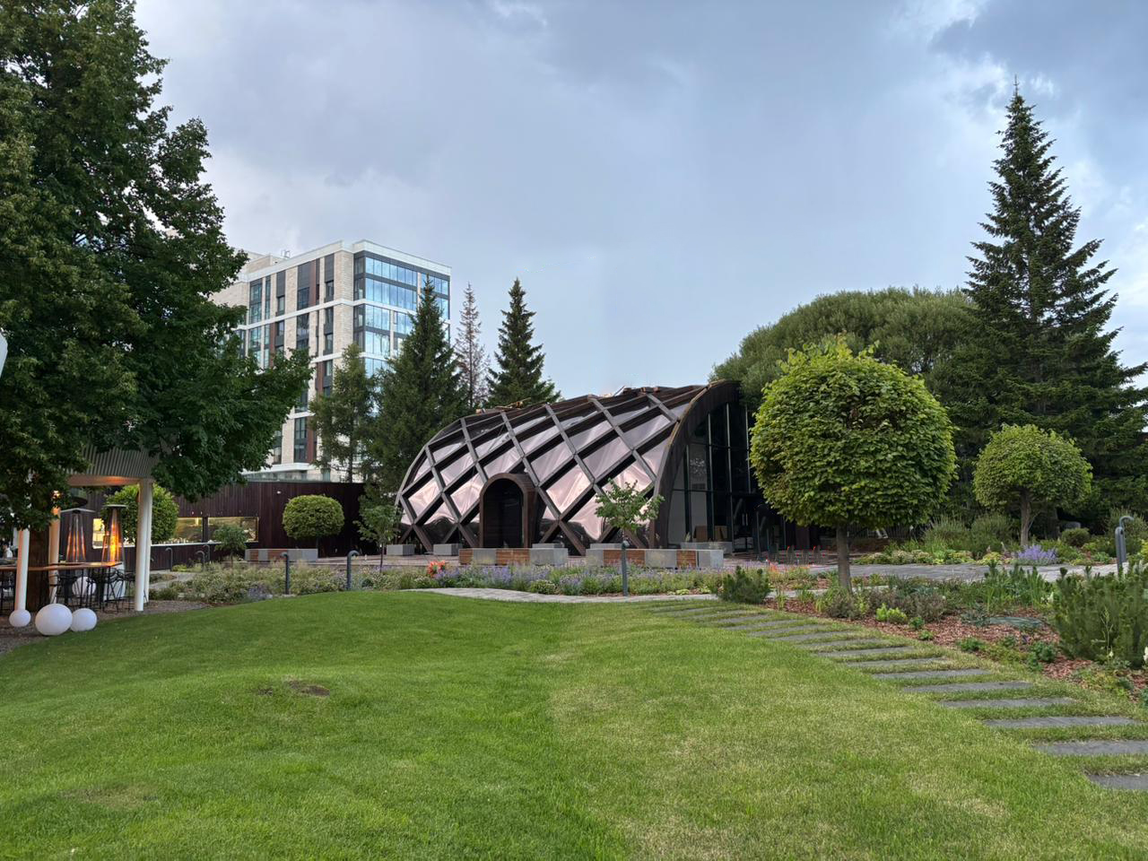 Просторный банкетный холл в парковой зоне отеля с панорамными окнами оформлен в современном стиле. Вид на живописный парк, элегантная обстановка, стильные элементы декора. Максимальная вместимость до 70 человек.